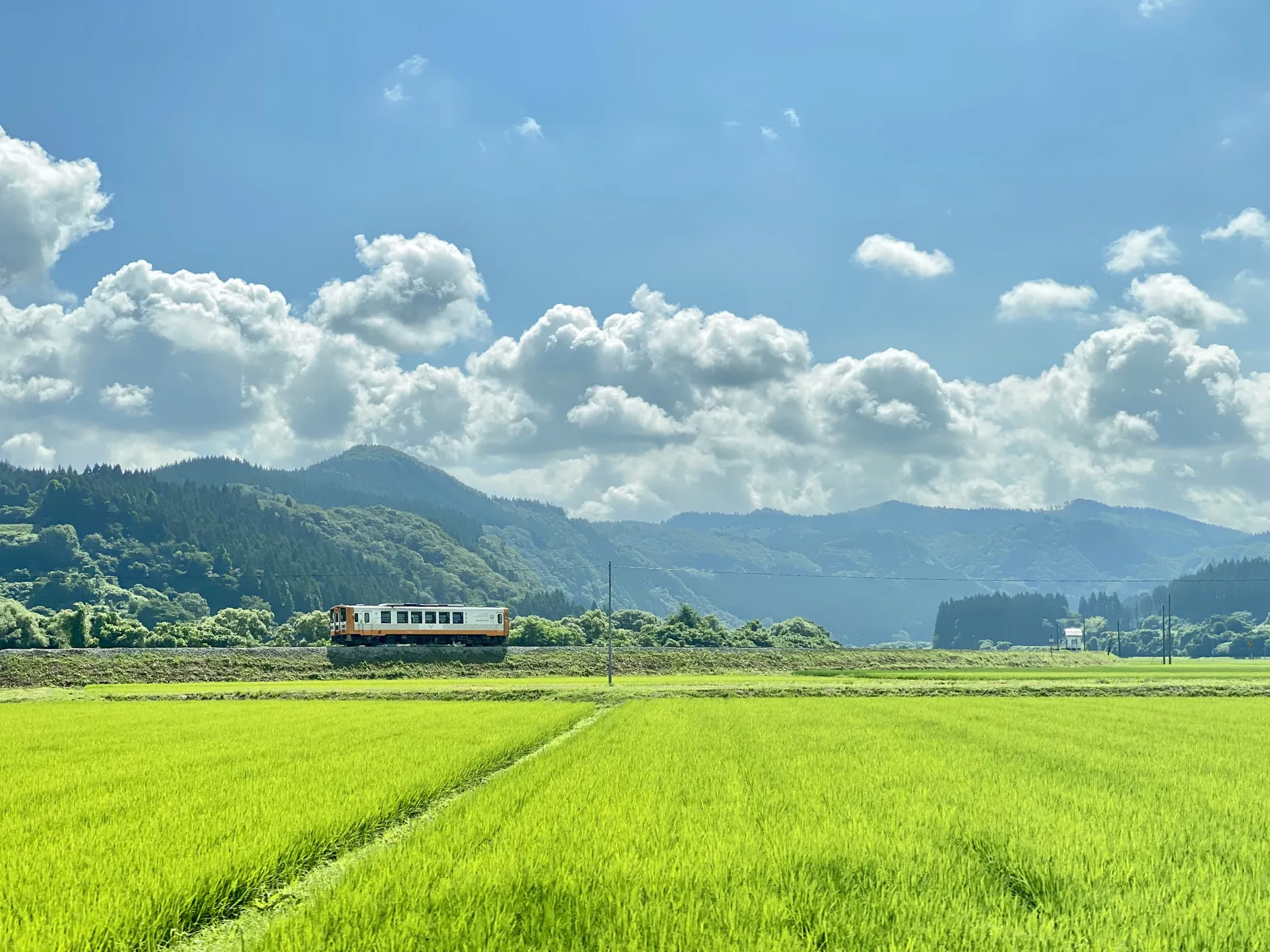 市内には田園風景の中、ローカル線の「由利高原鉄道」が走っています。